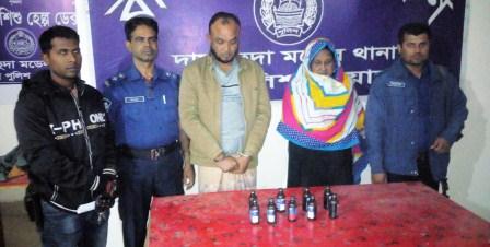 নিজস্ব প্রতিবেদকঃ দামুড়হুদা থানা-পুলিশ মাদকবিরোধী অভিযান চালিয়ে ১৯ বোতল ফেনসিডিলসহ দুজনকে আটক করেছে। আটকৃত ব্যক্তিরা হলেন পার-দামুড়হুদা গ্রামের শফি ইসলামের স্ত্রী মাজেদা থাতুন (৪৫) ও চুয়াডাঙ্গা সিএনবিপাড়ার লিয়কত আলীর ছেলে মিজানুর রহমান (৪০)। তবে অভিযানকালে পার-দামুড়হদার শফি ইসলাম (৫০) ওনপারভেজ (২৫) পালিয়ে যায়। গতকাল মঙ্গলবার রাত সাড়ে ৮টা ও সাড়ে ৯টার সময় বিভিন্ন স্থান থেকে তাঁদের আটক করে পুলিশ।