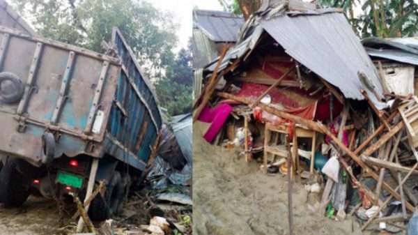 বগুড়া প্রতিবেদকঃ বগুড়ার নন্দীগ্রাম পৌর এলাকার ওমরপুরে নিয়ন্ত্রণ হারিয়ে বালু বোঝাই ট্রাক মহাসড়কের পাশের একটি ঘরে ঢুকে পড়ে। এতে ওই ঘরে ঘুমিয়ে থাকা মা ও মেয়ে নিহত হয়েছেন। শনিবার ভোররাত ৩টার দিকে বগুড়া-নাটোর মহাসড়কের ওমরপুরের সড়কপাড়া এলাকায় এ দুর্ঘটনা ঘটে। নিহতরা হলেন- ওমরপুর সড়কপাড়ার মৃত আলতাফ হোসেনের স্ত্রী অতেজান বিবি (৬৫) ও তার মেয়ে কাতলী খাতুন (৪০)।