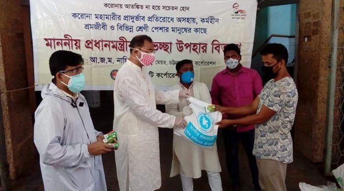 চট্টগ্রাম থেকেঃ নগরীর ১২’শ শ্রমজীবী মানুষদের মাঝে মাননীয় প্রধানমন্ত্রী শেখ হাসিনার উপহার সামগ্রী তুলে দিয়েছেন সিটি মেয়র আ জ ম নাছির উদ্দীন। আজ রবিবার ৩১ মে সকালে তিনি চসিক পুরাতন কার্যালয়ে ৩’শ পাদুকা শিল্প শ্রমিক, শাহ আমানত সেতু সংলগ্ন কমিউনিটি সেন্টারে ৩’শ জন মৎস শিকারী, মুরাদপুর মির্জাপুল এলাকায় ৩’শ জন ক্রোকারিজ এন্ড এ্যালুমিনিয়াম দোকান কর্মচারী ও ৩’শ জন এ্যালুমিনিয়াম কারখানা শ্রমিকদের মাঝে এই উপহার সামগ্রী বিতরণ করেন। এসময় কাউন্সিলর হাজী নুরুল হক, বকসির হাট ওয়ার্ড আওয়ামী লীগ নেতা এস এম মামুনুর রশীদ, শান্ত দাশগুপ্ত,সড়ক পরিবহন শ্রমিক লীগ নেতা উজ্জ্বল বিশ্বাস, বকসির হাট ওয়ার্ড যুবলীগ নেতা মহিউদ্দিন জনি, লিটন, ওমর আলী, মো ইউসুফসহ নেতৃবৃন্দ উপস্থিত ছিলেন।